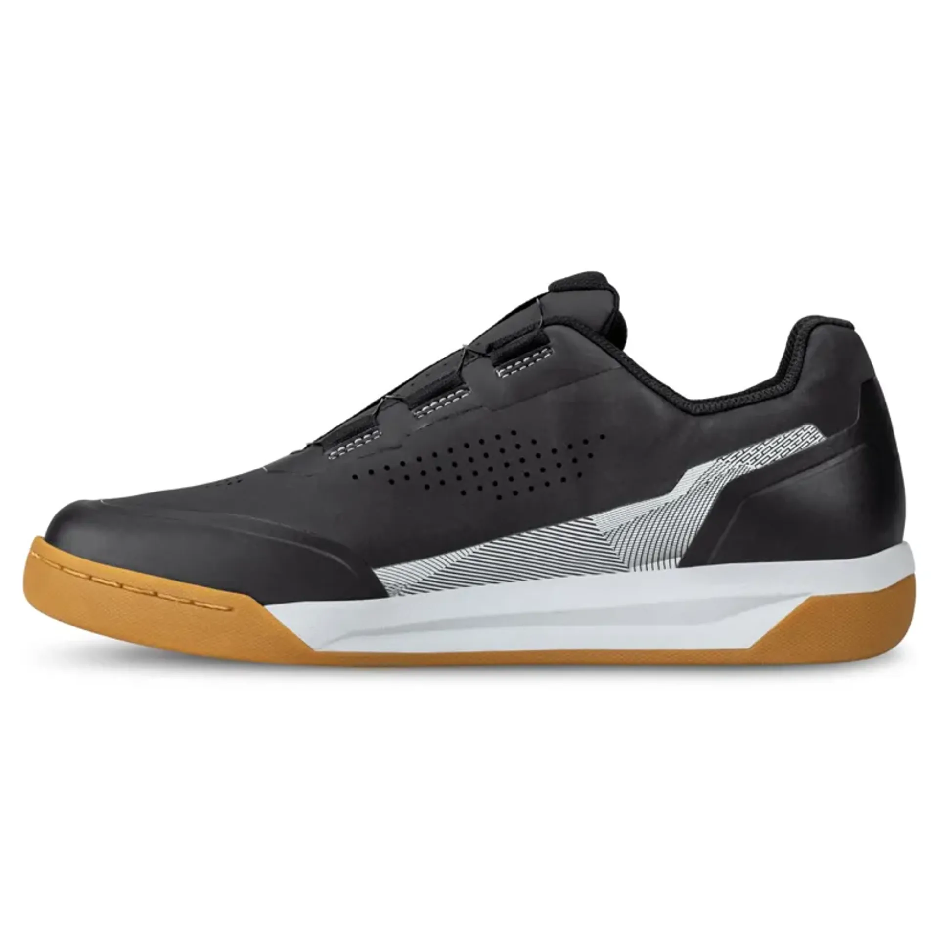 BOA® precision fit for improved comfort Adaptable lightweight polyurethane for a perfect shoe fit Molded toe and heel counter for extra protection Extra Sticky rubber compound for grip in all conditions Flat outsole specific for pedals without cleat mount
